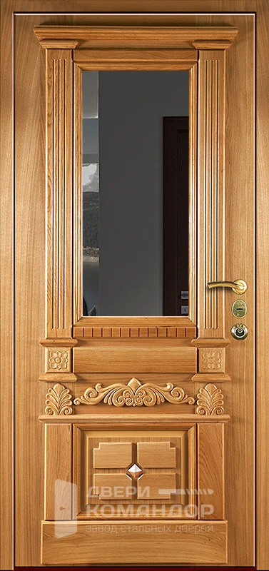 Входная дверь в коттедж с фрамугой размером 96x205 см. на заказ с доставкой и установкой по цене 221400руб. Возможно изготовить по индивидуальным размерам. Также возможно боковые вставки и фрамуги в стиле и цвете двери. Изменение цвета отделки и фурнитуры не влияет на стоимость.