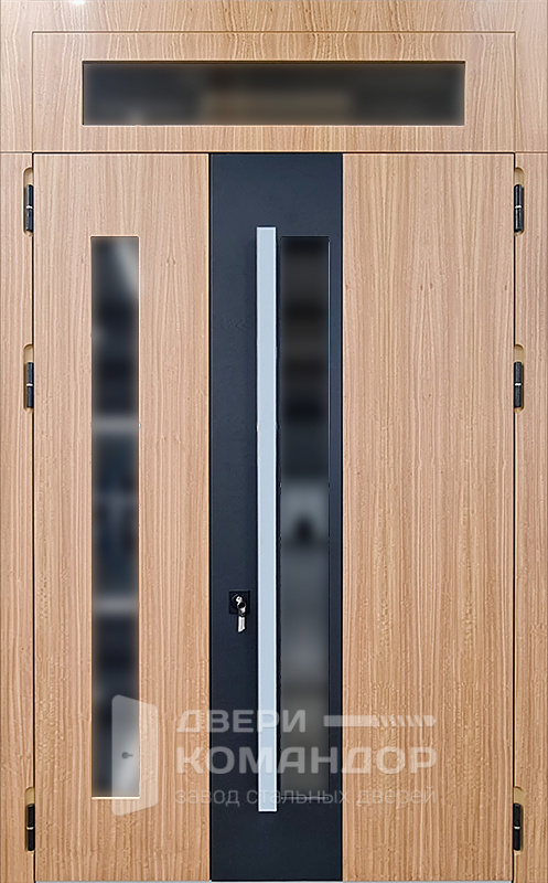 Двухстворчатая дверь с фрамугой и стеклом с турецкими замками KALE KILIT на заказ с доставкой и установкой по цене 80000руб. Возможно изготовить по любым индивидуальной конструкции. Также возможно боковые вставки и фрамугу в стиле и цвете двери. Изменение цвета отделки и фурнитуры не влияет на стоимость.