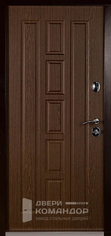 Коричневая металлическая дверь размером 90x200 см. на заказ с доставкой и установкой по цене 30380руб. Возможно изготовить по любым индивидуальным размерам. Также возможно боковые вставки и фрамуги в стиле и цвете двери. Изменение цвета отделки не влияет на стоимость.