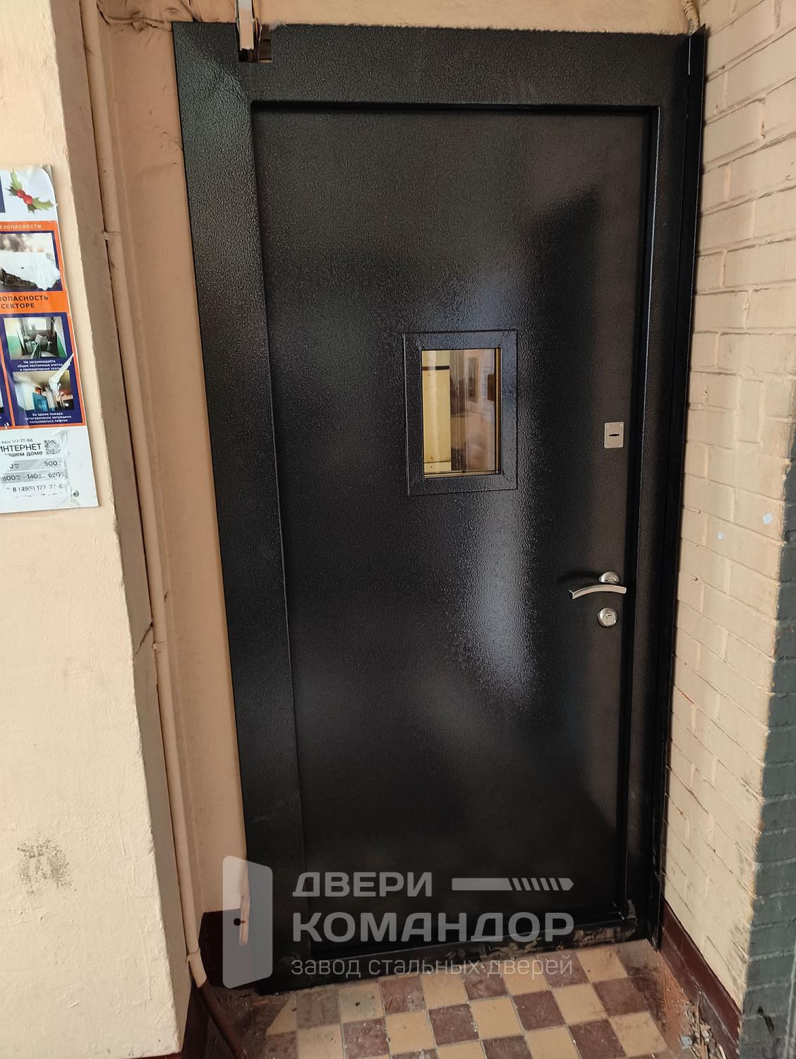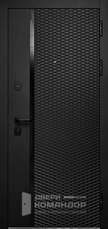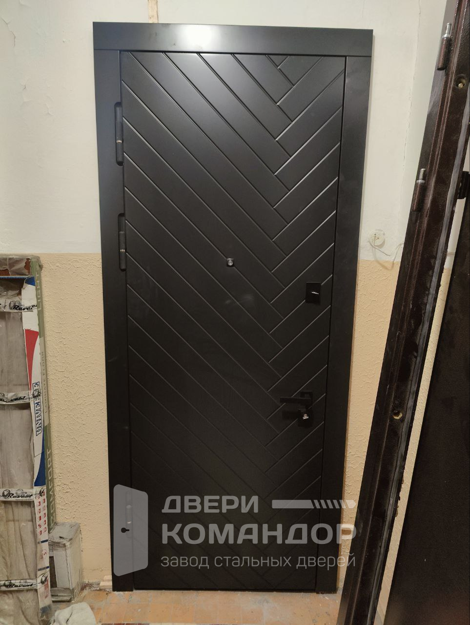 Черная матовая входная дверь размером 96x205 см. на заказ с доставкой и установкой по цене 40590руб. Возможно изготовить по индивидуальным размерам. Также возможно боковые вставки и фрамуги в стиле и цвете двери. Изменение цвета отделки и фурнитуры не влияет на стоимость.