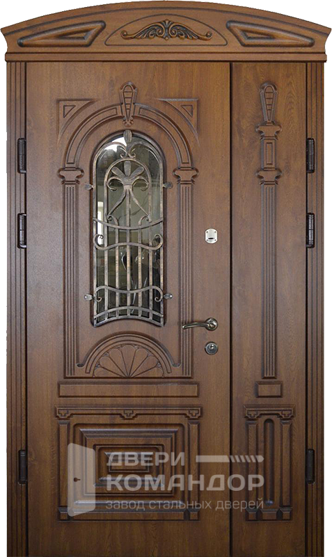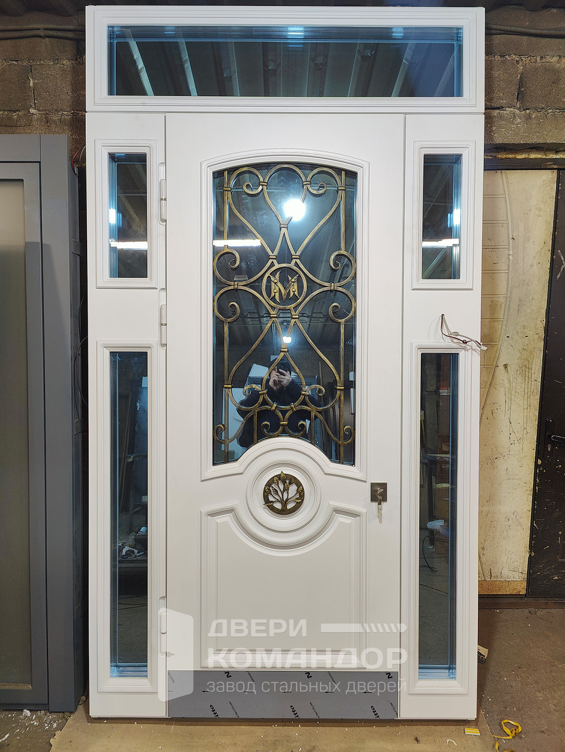 Парадная дверь со стеклом и ковкой №11 - наружная сторона
