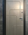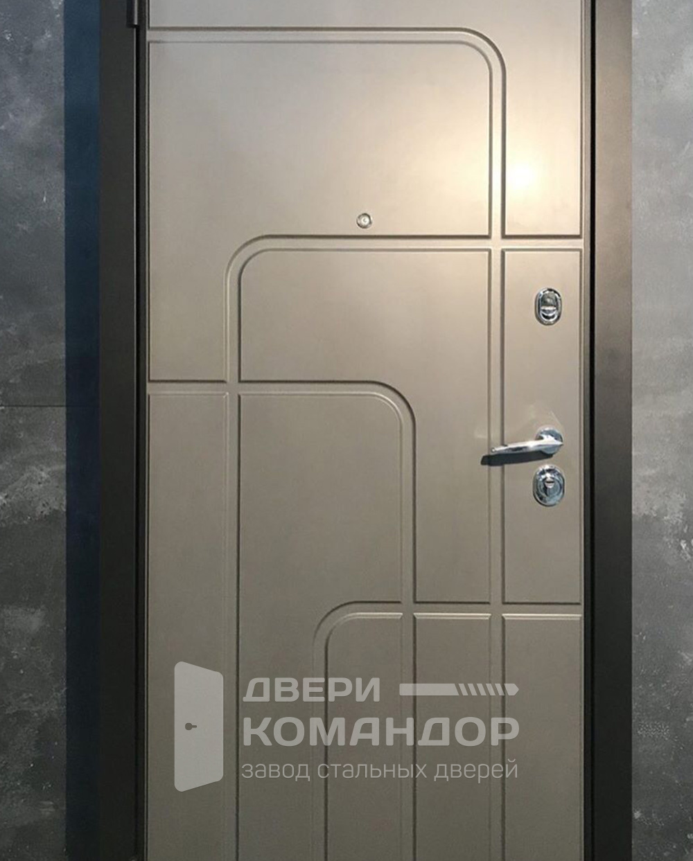 Спокойный бежевый цвет и аккуратная геометрия фрезеровки делают эту дверь заметной без лишней показухи. МДФ-панели с двух сторон дают ровную, тёплую на ощупь поверхность и улучшают шумоизоляцию квартиры; покрытие износостойкое, легко протирается и не боится частых прикосновений. Тёмный короб подчёркивает светлое полотно, хромированная фурнитура добавляет современный акцент. На лицевой стороне — глазок и пара разнесённых замков с броненакладками. Оптимальный выбор для установки в тёплом подъезде или внутри тамбура; для частного дома под открытое небо такую отделку стоит ставить только под навес. Ровные радиусы и прямые линии смотрятся аккуратно в любом интерьере — от спокойного классического до минимализма.