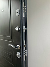 Torex Берн — сдержанный минимализм, который собирает прихожую в единый, аккуратный кадр. Подходит для квартиры и тёплого подъезда: снаружи тёмный графит с лёгкой шагренью на порошковом покрытии стойко переносит повседневные касания и уборку, не выгорает и не боится мелких царапин. Внутри — МДФ под темное дерево с строгими филёнками: визуально «утепляет» пространство, легко очищается, не боится бытовой химии. Глазок на комфортной высоте, плавный ход ручки и плотная посадка полотна — тишина в коридоре и мягкое закрывание без дребезга. Запирание многоточечное: ригели уверенно входят в ответные планки по периметру, усиливая прижим и контроль. Короб и полотно смотрятся монолитно, а аккуратные зазоры и уплотнитель по контуру добавляют ощущение класса в ежедневном использовании.