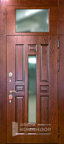 Полуторная входная дверь для квартиры в подъезд: основная створка работает ежедневно, узкая дополнительная — выручает при заносе техники и мебели. Сверху аккуратная фрамуга закрывает высокий проём без громоздких доборов, выглядит цельно и аккуратно. Снаружи — сдержанная МДФ-накладка тёмного тона, устойчивая к повседневным касаниям и не боящаяся уборки; внутри — белая МДФ с классическими филёнками, она освежает прихожую и визуально добавляет света. Трёхсистемный замок Меттэм даёт плотную прижимку и уверенное запирание, без люфтов и капризов. На петлевой стороне — противосъёмные штыри, торец усилен ригелями. Фурнитура в тёплом металлическом оттенке ставит аккуратный акцент.
