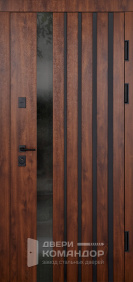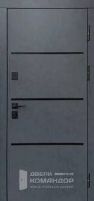 Строгий лофт без лишнего шума: матовый графит полотна, глубокие рамки панелей и эффектный верхний багет образуют аккуратную архитектуру входа. Плёнка ПВХ на МДФ держит ежедневные касания, не боится влажной уборки и сохраняет цвет, а сплошная поверхность без пор быстро оттирается после ремонта. Для квартиры и тёплого подъезда — идеальный вариант; в частный дом ставьте под навес. В серой стальной дверью в стиле лофт с панелями МДФ и багетом особенно гармонируют бетон, кирпич и светлая штукатурка: выразительный карниз задаёт вертикаль, а ровные фаски панелей добавляют глубины. Лаконичная хромированная фурнитура подчёркивает графичность и не перетягивает внимание на себя — всё работает на чистую линию.