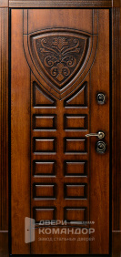 Внутренняя металлофилёнка выглядит аккуратно и ровно: панельные рамки читаются чётко, поверхность воспринимается спокойной и опрятной. В итоге получаем дверь, которая снаружи показывает характер, а внутри ведёт себя воспитанно.