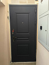 Плюс к эстетике — цельное глухое полотно без стекла и декоративных вставок. Это сразу добавляет ощущение закрытости и приватности: дверь не показывает лишнего и не отвлекает от главного — надёжного, солидного фасада квартиры.