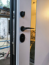 Скоба удобна тем, что не требует точного попадания рукой в небольшую ручку. Подошли с пакетом, в перчатках или просто в спешке — хват будет естественным. Для частного дома, где вы постоянно выходите и заходите, это неожиданно ценная мелочь.