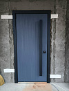 Вертикальная фактура на наружной панели задаёт ритм и визуально вытягивает полотно по высоте. За счёт этого дверь выглядит дороже и аккуратнее, даже если вокруг не дворец, а обычный вход в дом. Рельеф не кричит, а уверенно держит линию.