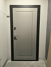 Чёрная окантовка работает как аккуратный контур: подчёркивает форму полотна и делает общий вид более строгим. Визуально это плюс для квартиры: дверь не теряется на фоне тёмной коробки и при этом не кричит про себя на весь этаж.