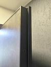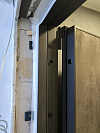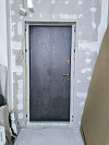 Тёмная гладкая внутренняя отделка проще относится к жизни: на ней меньше заметны случайные касания, пыль, следы от рук и неизбежные микроприключения со стремянкой. После окончания работ такую временную панель обычно меняют на постоянную — и вход сразу становится полностью интерьерным.