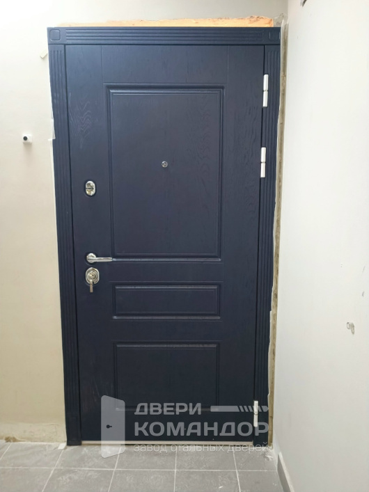 Снаружи — глубокий роял синий с выразительной древесной текстурой и аккуратными филёнками, изнутри — спокойный белый софт, который подсвечивает прихожую и легко сочетается с любой отделкой. Эта дверь уместна в квартиру или подъезд: МДФ-панели выглядят солидно, устойчивы к мелким царапинам и не требуют сложного ухода, а при необходимости наличники и доборы подберём в тот же цвет. В середине хочется отметить диву МД-45 роял синюю и М7 белую в софте: гармоничный контраст, продуманная фурнитура, глазок на обе стороны, два раздельных замковых узла с бронированной накладкой. На петлевой стороне — противосъёмный штырь, чтобы дверь оставалась на месте даже при попытке снять полотно. Опционально интегрируем видеодомофон — проводка и место под монтаж предусмотрены.