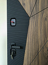 Со стороны квартиры панель нарочито спокойная: горизонтальные линии дают ритм, но не перетягивают внимание. Это удобно, когда в прихожей и так хватает вещей, света и фактур.