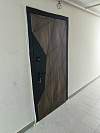 Матовая древесная текстура помогает рисунку выглядеть глубже и не бликовать в подъездном освещении. Плюс мелкие следы и пыль на матовой поверхности ведут себя скромнее, чем на глянце.
