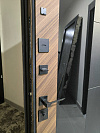 Главная выгода здесь простая: вы получаете современный двухсторонний дизайн, который не нужно оправдывать и прятать. Дверь выглядит цельно, держит строгий характер и при этом остаётся тёплой за счёт древесной фактуры, так что в квартире она будет смотреться не как складская, а как своя.