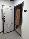 Строгий серый снаружи, светлая классика внутри — дверь для квартиры и подъезда, которая наводит порядок в стиле и в тишине. Наружная сторона в оттенке серый шёлк — лаконичная плоскость с тонкими горизонтальными линиями: практична, не бликует, скрывает следы повседневной жизни. Внутри — фрезерованная панель под белый ясень: освежает коридор, визуально расширяет пространство и легко дружит с любым интерьером. В модели Liberty Престиж продумана функциональность: два разнесённых замка с мощными ригелями, смотровой глазок, плотный контур уплотнения по периметру для тишины и отсечения запахов. Черная матовая фурнитура подчёркивает графику полотна. Наличники и доборы можно выполнить в тон, при необходимости установим видеодомофон.