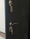 Две зоны запирания и три наружные петли добавляют ощущение собранности конструкции: дверь не выглядит декоративной, она выглядит рабочей. Именно это и формирует тот самый уставной внешний вид.