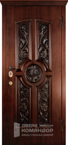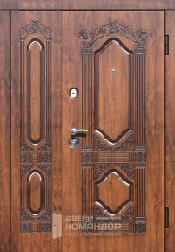 Объёмная филёнка и центральная вставка визуально собирают полотно и делают плоскость дороже на вид. Рельеф помогает скрывать мелкие следы эксплуатации — дверь стареет благороднее, чем обычная гладкая.