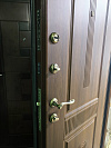 Внутренняя отделка выполнена практичной ПВХ-панелью с древесной фактурой: её проще протирать, она спокойнее реагирует на бытовые мелочи и выглядит стабильно годами. Это особенно полезно для квартиры, где дверь работает каждый день без выходных.