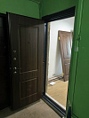 Изнутри ПВХ-панель под тёмное дерево поддерживает отделку прихожей и не превращает вход в чужеродный металл. Получается аккуратный контраст: дисциплина снаружи, уют внутри.