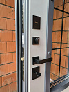 Важно, что светлая вставка не отменяет «входной характер» конструкции: стекло — лишь часть композиции, а основная площадь полотна остаётся металлической. Это про комфорт без потери ощущения надёжности.
