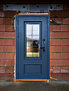 При этом дверь остаётся именно входной: стекло не занимает всё полотно, а встроено в жёсткую рамку. Получается баланс — больше естественного света, но без ощущения, что вы поставили витрину вместо защиты.