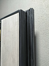 Внешняя сторона — тёмная, с вертикальной рифлёной текстурой и диагональным акцентом. Такой рисунок держит строгий вид и визуально вытягивает полотно по высоте.