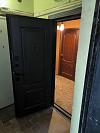 Эта дверь сделана для типовой квартиры, где проём уже расширяли или собираются расширять. Задача простая: не оставить вокруг полотна ощущение ремонта в процессе, а получить аккуратный строгий вход.