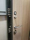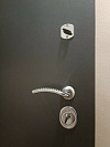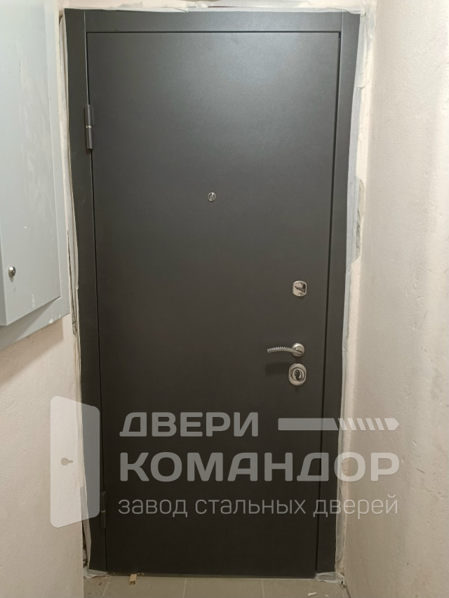 Эта дверь — для квартиры, где ценят спокойствие и аккуратность. Снаружи — графитовое порошковое покрытие без лишнего декора: выглядит строго, не боится повседневных касаний и легко очищается. Внутри — тёплая МДФ-панель под светлое дерево, она добавляет света прихожей и не капризничает при уборке. В конструкции входной двери Премиум 90Б-Н Завода Дерево изделий предусмотрены два разнесённых замка и глазок, а притвор закрывается плотно и тихо — меньше посторонних звуков с лестничной площадки. С внутренней стороны есть ночная задвижка: удобно запираться без ключа. Хромированная фурнитура идёт в тон внешнему минимализму, рукоять ложится в ладонь уверенно. Получается честное решение на каждый день: спокойный фасад снаружи и уютный светлый интерьер внутри.