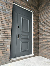 Графитовая внешняя сторона с металлофилёнкой добавляет объёма: рельефные филёнки читаются с расстояния и держат строгую геометрию. Такой фасад не требует лишнего декора — он и есть декор, только в инженерном исполнении.