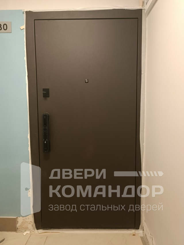 Stardis Comfort — практичное решение для квартиры или тёплого подъезда, где важны надёжность и удобство каждый день. Снаружи — молотковое напыление в благородном тёмном оттенке: фактура прячет мелкие следы эксплуатации, стойко переносит частые касания и не выгорает, сохраняя аккуратный вид проёма. Внутри — панель МДФ с спокойным современным декором: тёплая на ощупь, хорошо гасит шум из подъезда и не боится влажной уборки. Главная «фишка» — биометрический замок на планке: прикоснулся — открыл, есть и кодовая клавиатура для гостей, и карточка — когда руки заняты. Комплект дополняют глазок и аккуратные накладки; по периметру — уплотнение для мягкого закрывания без дребезга. В итоге дверь выглядит строгой и собранной, а пользоваться ею приятно и интуитивно просто.