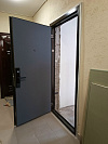 Эта дверь — для квартиры на лестничной площадке, где важны тишина, аккуратный вид и ежедневная выносливость. Снаружи — порошковое молотковое покрытие глубокого тёмно-бронзового тона: не боится мелких ударов, скрывает следы эксплуатации и долго держит цвет. Изнутри — гладкая МДФ в холодном серо-графитовом оттенке без лишней фрезеровки: легко сочетается с современным интерьером и просто протирается. Электронный замок позволяет входить по коду или карте, а ручка работает мягко и предсказуемо. В комплектации дверью Stardis Comfort с электронным замком установлен глазок, ровная посадка полотна и эластичный контур уплотнения делают закрывание тихим, а сочетание строгих фактур задаёт спокойную, собранную эстетику входа.