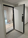Stardis Expert — дверь для квартиры с современным характером: с обеих сторон аккуратные МДФ-панели, снаружи — строгий глубокий тон, внутри — светлая, тёплая фактура, которая визуально расширяет прихожую. Главная «фишка» — биометрический замок Samsung: вход по отпечатку, коду или карте, без лишних ключей и с комфортным push-pull открыванием; изнутри — быстрый выход и понятная индикация. Полотно плотно прижимается по контуру, мягче закрывается и лучше изолирует звуки подъезда. Покрытие стойко к бытовым царапинам и легко очищается, а рисунок фрезеровки придаёт панели объём без излишеств. В итоге это спокойный, технологичный вход в дом, где безопасность незаметно работает на ваш ежедневный комфорт.