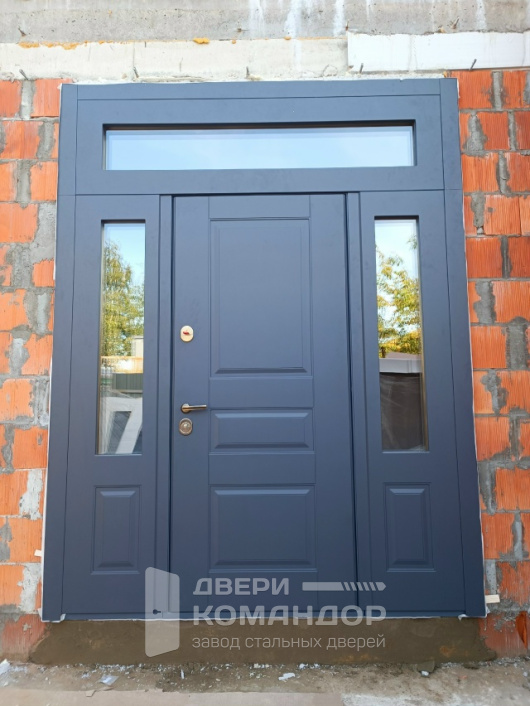 Stardis Termo — солидный входной комплект для частного дома: основное полотно и узкие боковые фрамуги со стеклопакетами плюс верхний свет дают много дневного света и визуально расширяют проём. Внешняя сторона — МДФ с аккуратной фрезеровкой и стойким покрытием: не боится мелких царапин, легко моется, сохраняет цвет на солнце; внутри — белая МДФ-панель, добавляющая свет и порядок в прихожей. Терморазрыв в конструкции разрывает мост холода, снижает риск конденсата и промерзания зимой. Узкие вертикальные вставки стекла работают как «глаз» дома, при этом сохраняют приватность. Многозапорная система и массивная коробка внушают спокойствие, а аккуратная фирменная отбортовка STARDIS и латунная фурнитура подчёркивают статус. Получается дверь, которая встречает мягким светом, а защищает по-взрослому.