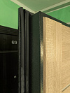 Такая отделка воспринимается домашней: дверь не выбивается из жилого пространства и не напоминает, что за стеной подъезд.