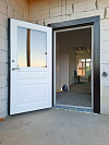 Дверь для частного дома, которая достойно встречает гостей и уверенно держит улицу. Снаружи — тёмный шпон с выразительным рисунком и филёнками, внутри — белая МДФ-панель под классику: светлая, легко моется, не темнеет со временем. Крупный стеклопакет пропускает дневной свет в прихожую, а магнитные уплотнители вместе с терморазрывом гасят сквозняки и не пускают холод. Порог из нержавейки переживёт мокрую обувь и абразив. В двери термо премиум шпон / шпон со стеклопакетом, магнитными уплотнителями, порогом из нержавейки, окраской металла в два цвета, на заказ гармонично сочетаются контрастный фасад и спокойный интерьер. Возможны наличники и доборы в цвет, предусмотрена установка видеодомофона.