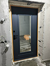 Эта модель про два эффекта сразу: с улицы она встречает строгим графитом и удобной скобой, а изнутри добавляет пространства большим зеркалом. В итоге входная зона выглядит аккуратно, а жить в ней проще.