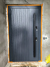 Снаружи — тёмный графит с чёткой вертикальной пластикой: часть полотна рельефная, часть гладкая, без лишних украшений. Такой фасад смотрится современно и не спорит ни с кирпичом, ни с штукатуркой.
