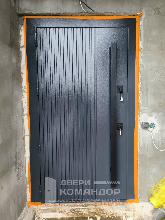 Терморазрыв отделяет наружный металл от внутренней стороны, поэтому холод не передаётся через полотно и коробку напрямую. Это помогает сохранить комфорт у входа и снизить риск наледи и мокрых углов.
