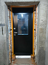 Эта дверь сделана для уличной установки: металл с обеих сторон, строгая геометрия и высокий стеклопакет, который добавляет свет там, где обычно царит коридорная тьма.