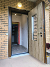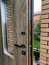Вертикальный стеклопакет визуально вытягивает полотно и добавляет дневного света в прихожую. При этом это именно стеклопакет, а не просто стекло в дырке, так что тепло остаётся дома, а не на улице.