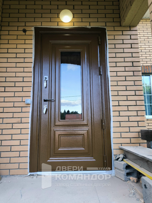 Остекление здесь не ради красоты в каталоге, а ради реального света в тамбуре или прихожей. Высокая вставка делает вход визуально легче и добавляет ощущение пространства.
