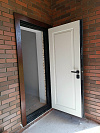 Эта дверь создана для частного дома и уверенно работает на улице: снаружи — благородный шпон под тёплый орех с аккуратной классической фрезеровкой, внутри — спокойная белая эмаль, которая легко впишется в современный интерьер. Тёплый контур с терморазрывом отсекёт промерзание и конденсат, сохраняя комфорт в прихожей. МДФ-панели устойчивы к повседневным царапинам и выцветанию, приятны на ощупь и не теряют геометрию. Матовая чёрная фурнитура подчёркивает графику филёнок, а усиленная запорная система с противосъёмным штырем надёжно фиксирует полотно. Это тот случай, когда внешняя сдержанность и внутренняя практичность работают на вас каждый день.