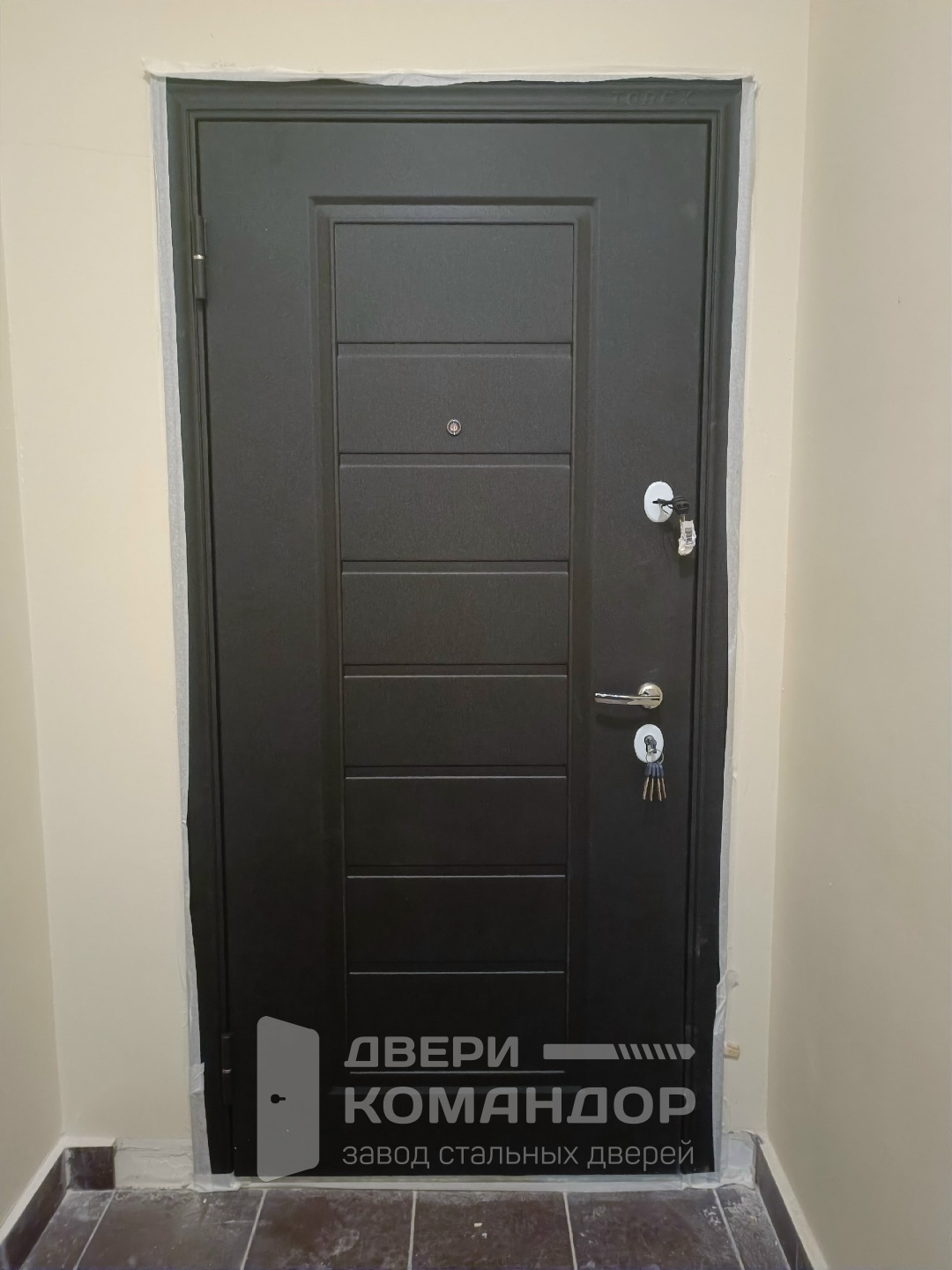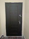 Входная дверь для квартиры с продуманным балансом спокойной эстетики и надёжности. Снаружи — МДФ под благородное тёмное дерево с аккуратной фрезеровкой: фактура скрывает следы касаний и дольше сохраняет презентабельный вид в подъезде. Внутри — светлая МДФ-панель с вертикальными линиями, визуально вытягивающая пространство прихожей и дружелюбная к любому интерьеру. Оба покрытия стойки к мелким царапинам, легко очищаются и не боятся частых протираний. Ровная посадка полотна, плотные контуры уплотнения и грамотно подобранная фурнитура создают ощутимую тишину и ощущение монолита при закрывании. Глазок расположен на удобной высоте, броненакладка аккуратно утоплена — ничего лишнего, только чёткая геометрия и уверенное ощущение защиты. Выбор для тех, кто предпочитает сдержанный дизайн и практичность каждый день.