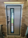 Важно, что остекление здесь не декоративная полоска ради красоты. Стеклопакет работает вместе с тёплой конструкцией полотна: свет проходит, а холод и сквозняки остаются снаружи. В результате вход выглядит современно, а в тамбуре не приходится включать свет посреди дня.
