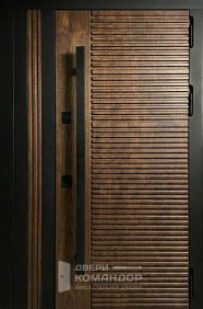 Внутри — светлая МДФ-панель с горизонтальными линиями. Рифление добавляет глубину без лишнего декора: прихожая становится визуально светлее, а следы повседневной жизни меньше бросаются в глаза. Получается честный контраст: с улицы строго, дома уютно и спокойно.