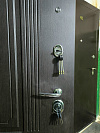 Комплект фурнитуры в металле (ручка, замковые зоны, глазок) поддерживает общий строгий стиль и не выбивается из палитры. Два замка дают привычную схему закрывания: один на каждый сценарий, от быстрого выхода до ночного спокойствия.
