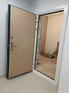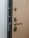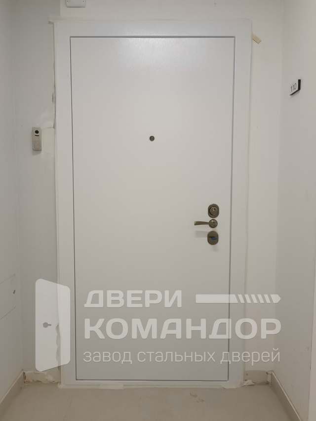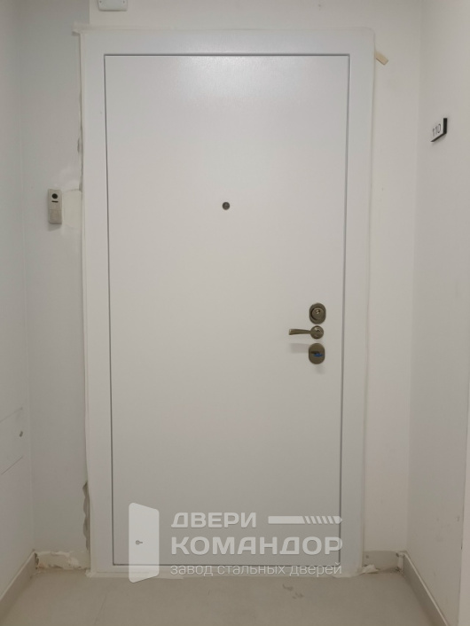 Stardis Expert — выбор для квартиры, где важны тишина и порядок уже на этапе ремонта. Снаружи полотно в белой порошковой окраске со спокойной матовой фактурой: не боится частых касаний, легко отмывается и не желтеет в подъездном свете. Внутри сейчас установлена временная ровная панель без рисунка — практичное решение на период отделки; после — смените на выбранную МДФ, не снимая дверь. Двухсистемный замок Mottura управляет двумя независимыми ригельными группами: закрывается мягко, фиксирует полотно по-настоящему плотно. Усиленные навесы и противосъёмные штыри на торце добавляют спокойствия. Два уплотнителя гасят запахи и шум из подъезда, глазок на уровне взгляда даёт хороший обзор. Чистая геометрия и нейтральные тона легко подружатся с минималистичной прихожей или светлым сканди-интерьером.