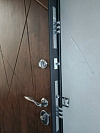 Эта дверь создана для квартиры: снаружи — прочное молотковое напыление в благородном графите, оно не боится частых касаний и аккуратно маскирует следы эксплуатации на лестничной площадке. Внутри — МДФ под тёмное дерево с диагональной фрезеровкой: рисунок оживляет прихожую, а износостойкая плёнка спокойно переносит уборку и перепады влажности. У входной стальной двери Stardis Comfort два разнесённых замка с силовыми ригелями фиксируют полотно по кромке, броненакладка защищает цилиндр, противосъёмные штыри удерживают дверь со стороны петель. Плотный контур уплотнения гасит сквозняки и шум, а хромированная фурнитура с плавным ходом добавляет ощущение собранности — каждый день, без лишнего шума и суеты.