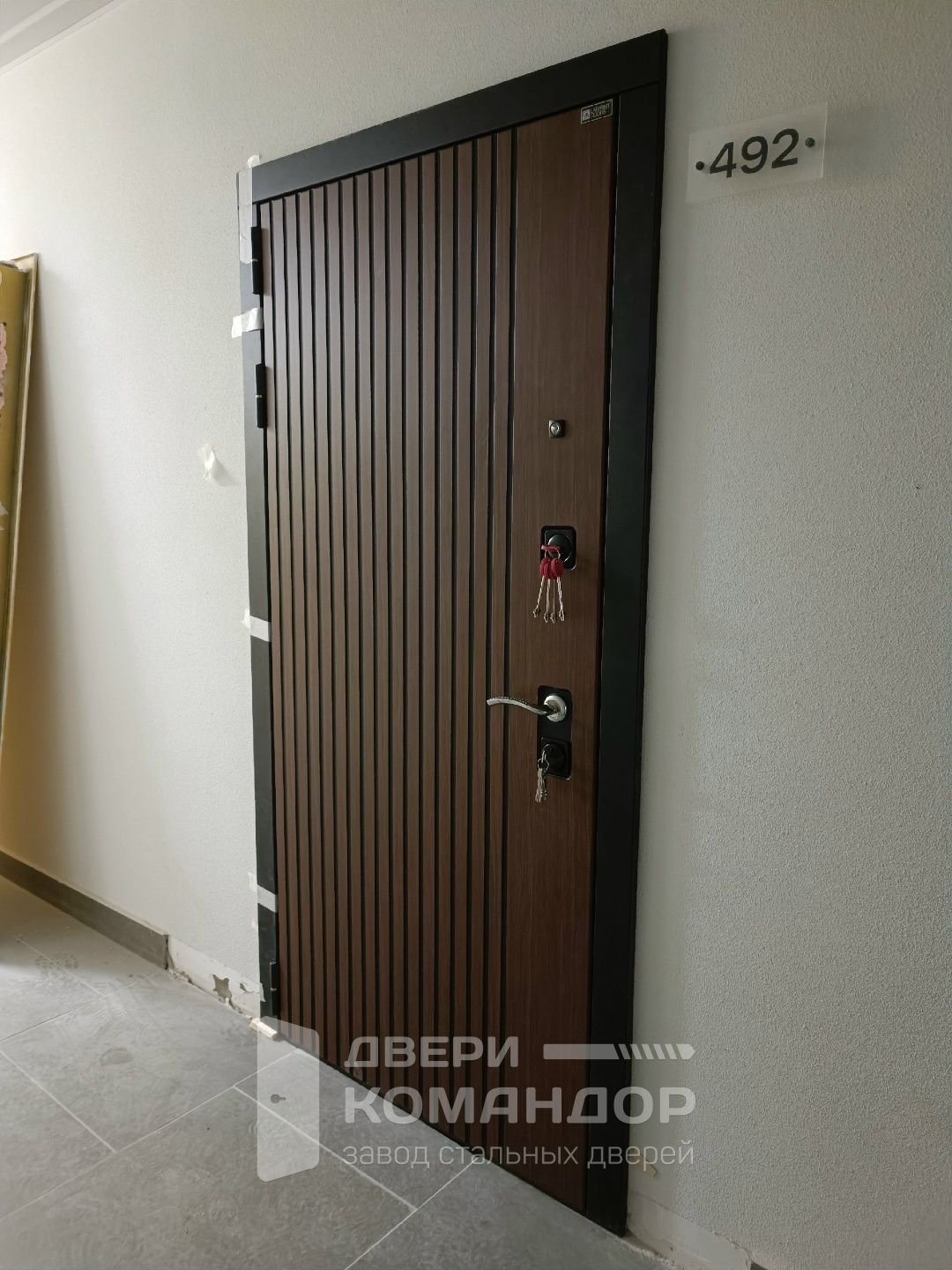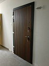 Аккуратная входная дверь для квартиры с выразительной лицевой панелью: вертикальные канавки образуют графичный «лабиринт», за счёт которого полотно выглядит уже и выше, а царапины и следы от ключей становятся менее заметны. Снаружи и внутри — МДФ с стойким покрытием: поверхность не боится частых касаний, легко отмывается и не выгорает под светом в подъезде. По периметру — двойной контур уплотнения, притвор садится плотно, в коридоре тише и без сквозняков. Узел запирания укомплектован массивными ригелями и силовой планкой, глазок установлен на удобной высоте — видно площадку, не открывая. Внутренняя сторона спокойная и светлая, под любые интерьеры; внешняя — с тёплой древесной фактурой и аккуратными квадратными накладками фурнитуры.